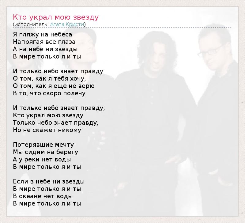 ГлавнаяИсполнителиАгата КристиКто украл мою звезду