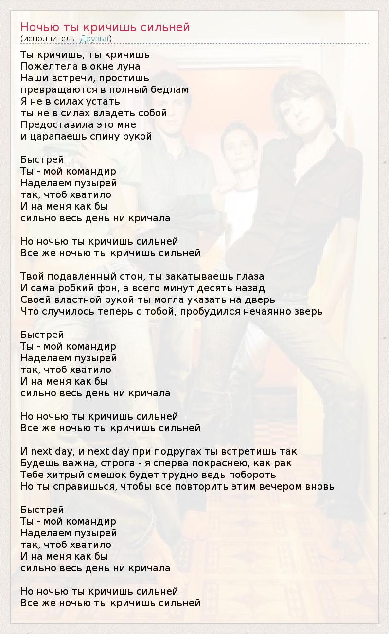 ГлавнаяИсполнителиДрузьяНочью ты кричишь сильней