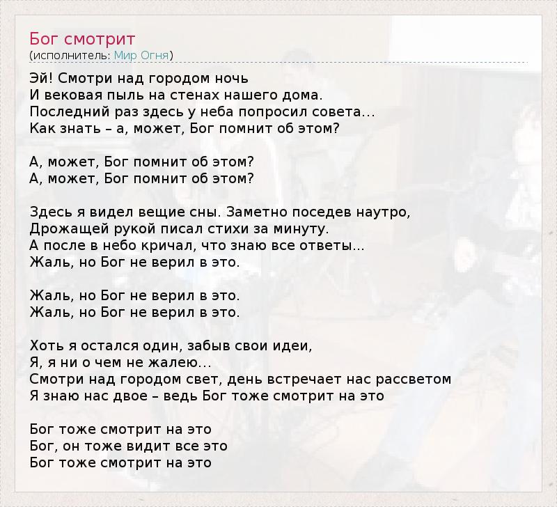 А как ты думаешь, о чем песня "Бог смотрит" ?