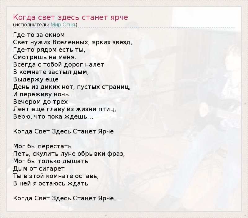ГлавнаяИсполнителиМир ОгняКогда свет здесь станет ярче