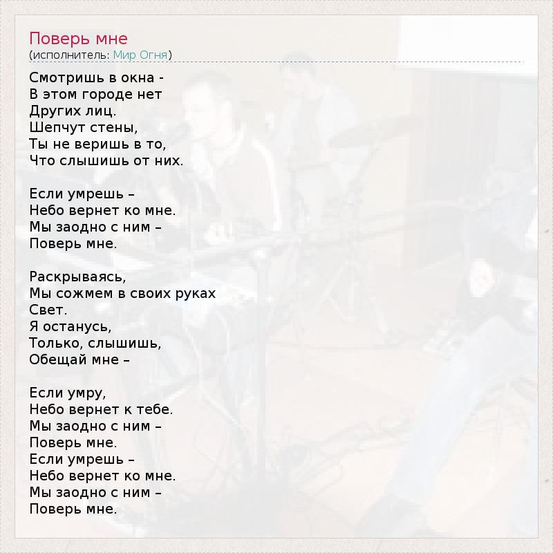 А как ты думаешь, о чем песня "Поверь мне" ?