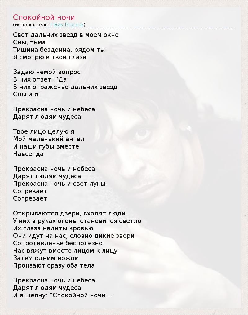 А как ты думаешь, о чем песня "Спокойной ночи" ?