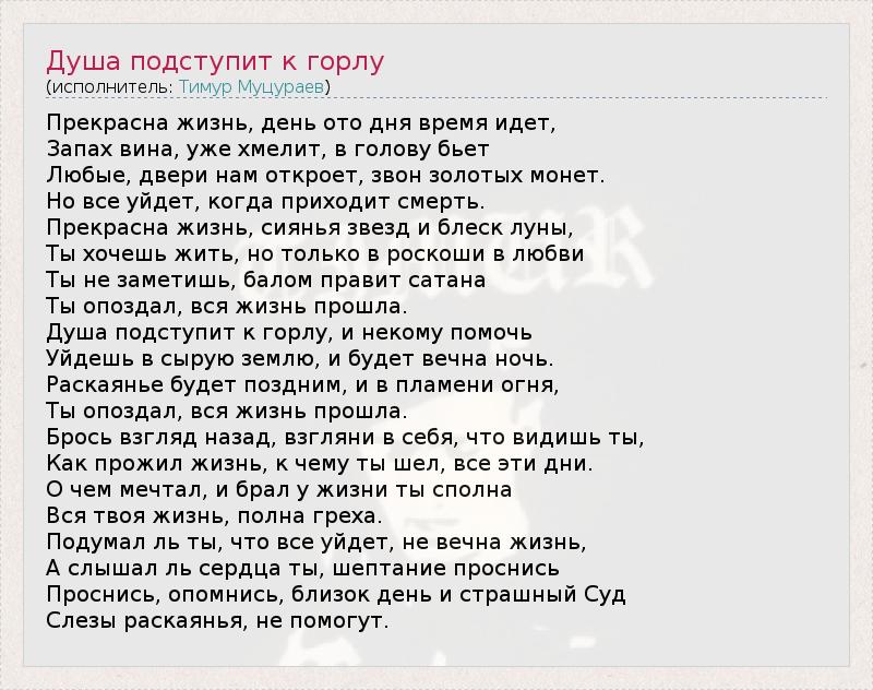 ГлавнаяИсполнителиТимур МуцураевДуша подступит к горлу