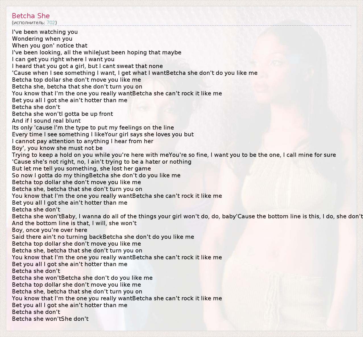 А как ты думаешь, о чем песня "Betcha She" ?
