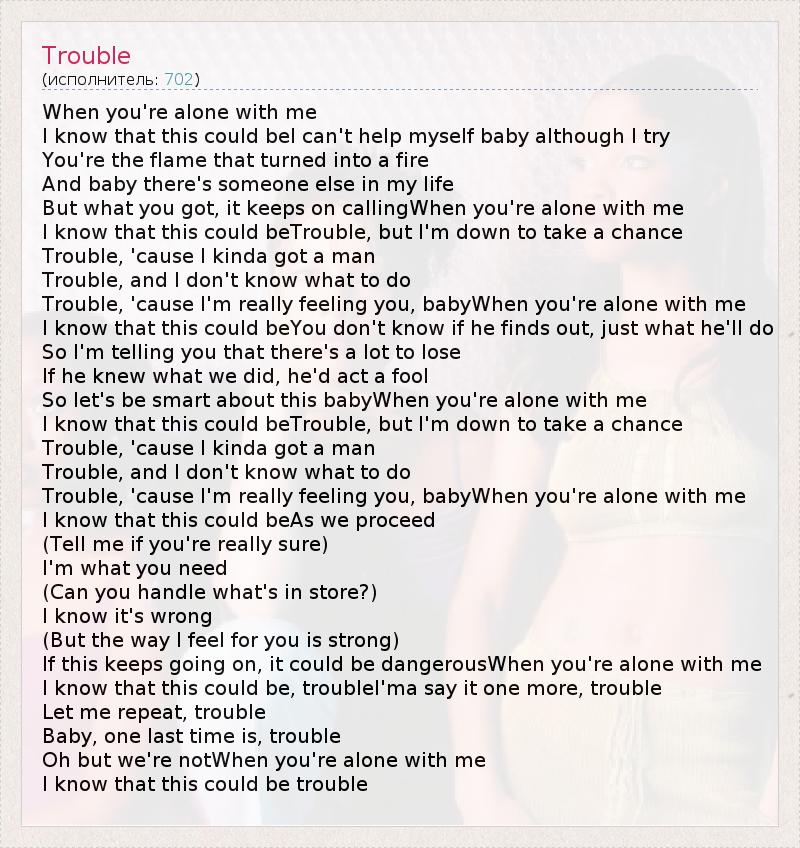 Trouble, 'cause I'm really feeling you, babyWhen you're alone with me