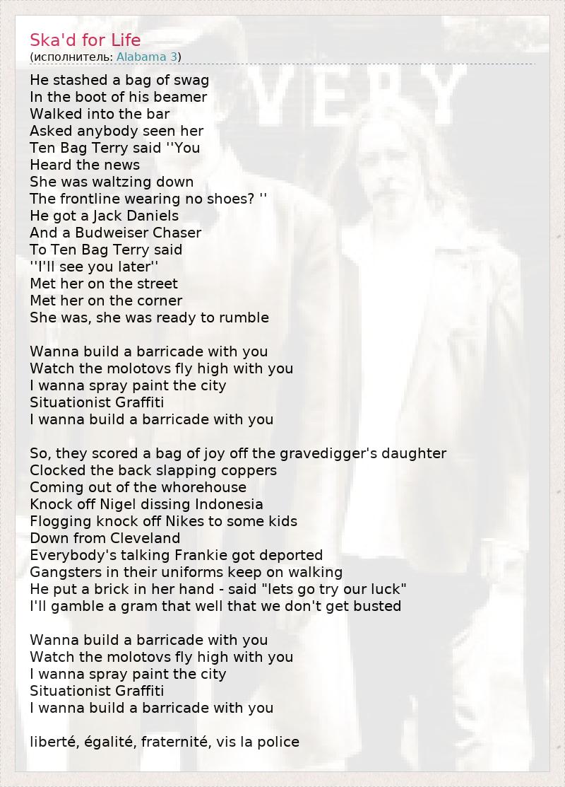 А как ты думаешь, о чем песня "Ska'd for Life" ?