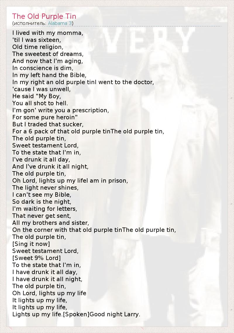 А как ты думаешь, о чем песня "The Old Purple Tin" ?