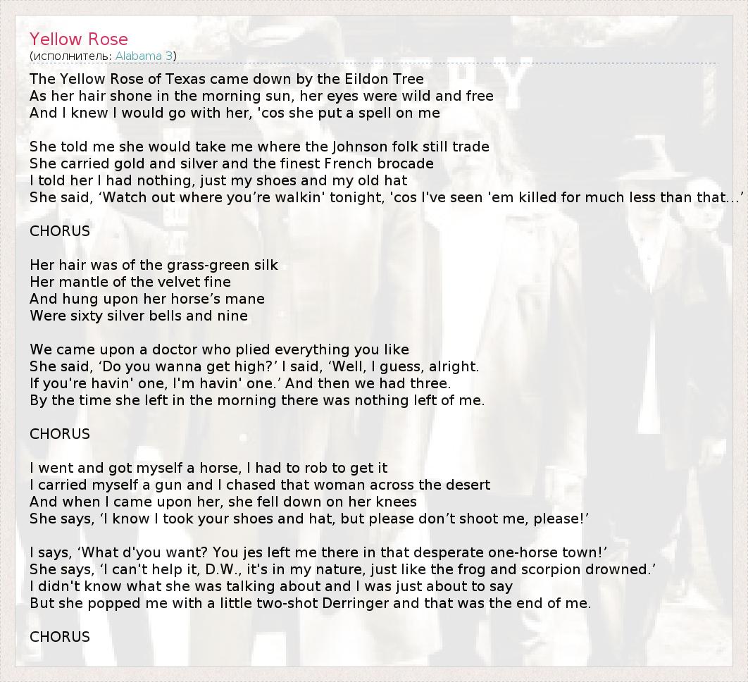 А как ты думаешь, о чем песня "Yellow Rose" ?