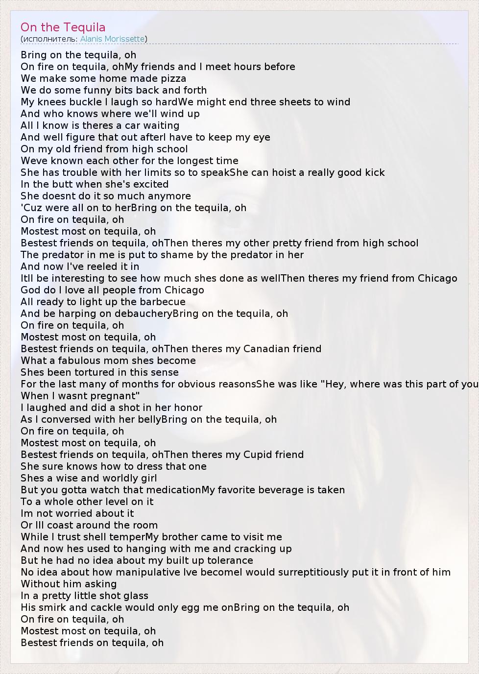 А как ты думаешь, о чем песня "On the Tequila" ?