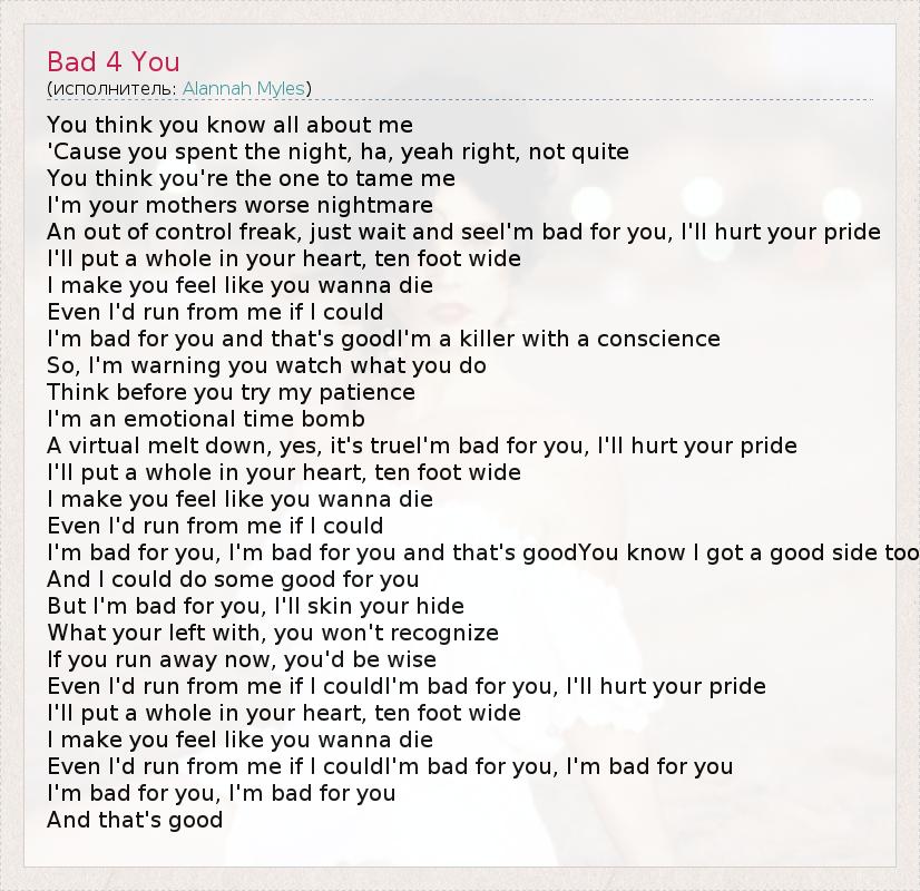 А как ты думаешь, о чем песня "Bad 4 You" ?