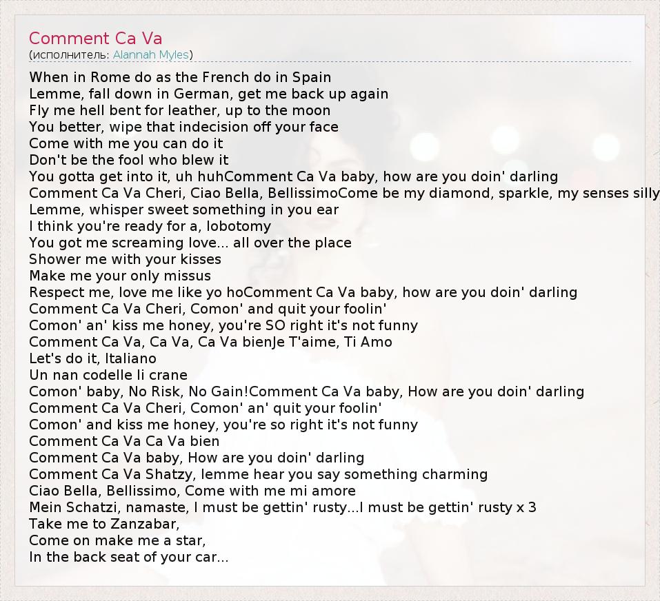 А как ты думаешь, о чем песня "Comment Ca Va" ?