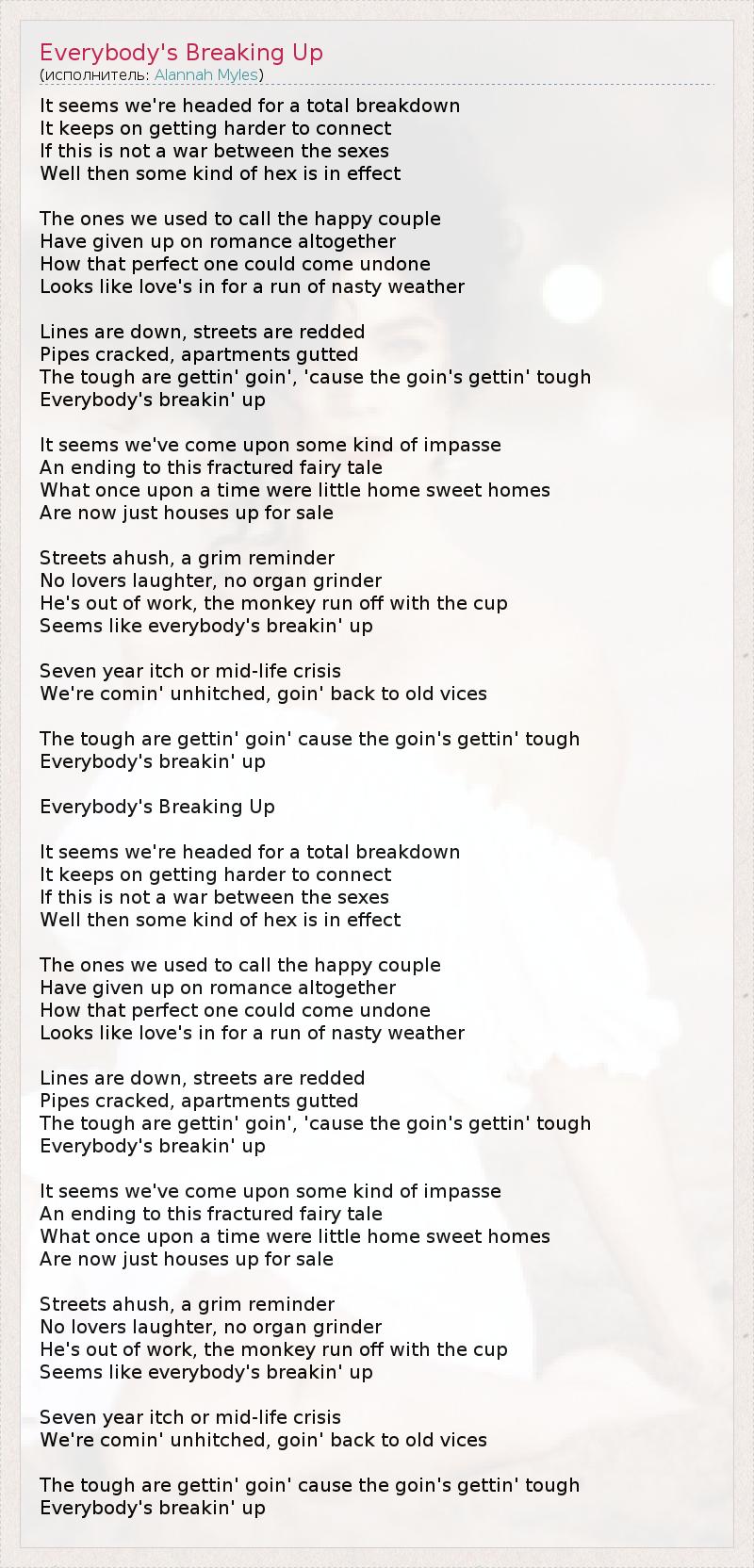 А как ты думаешь, о чем песня "Everybody's Breaking Up" ?