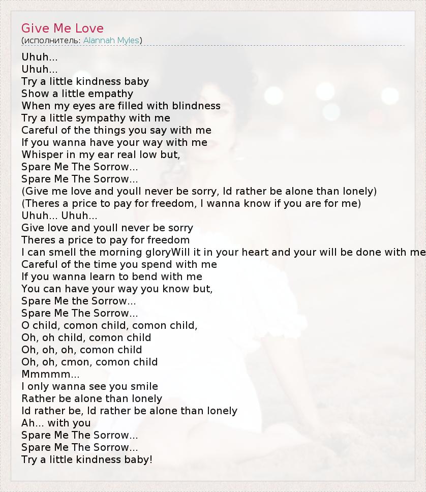 (Give me love and youll never be sorry, Id rather be alone than lonely)
