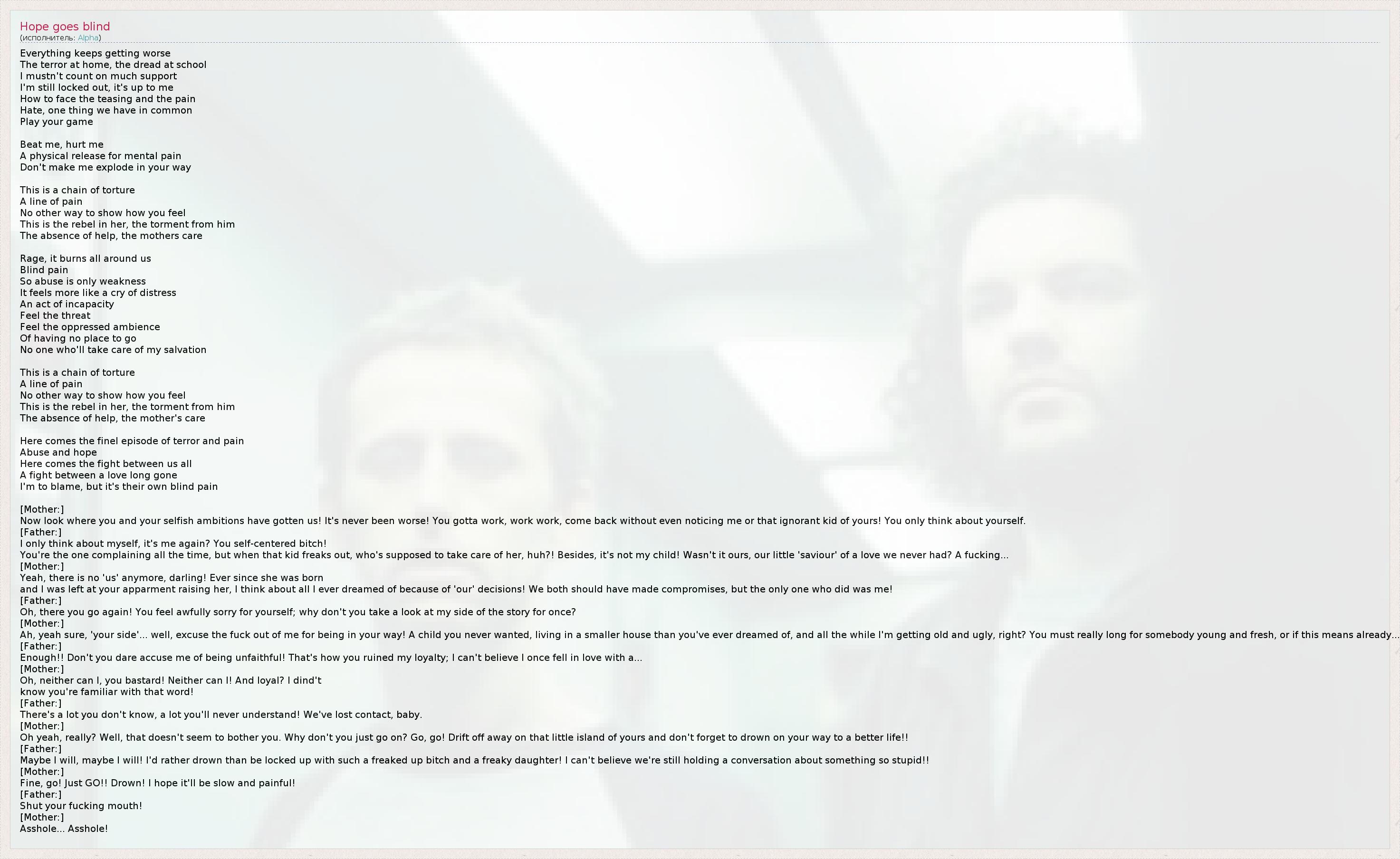 А как ты думаешь, о чем песня "Hope goes blind" ?