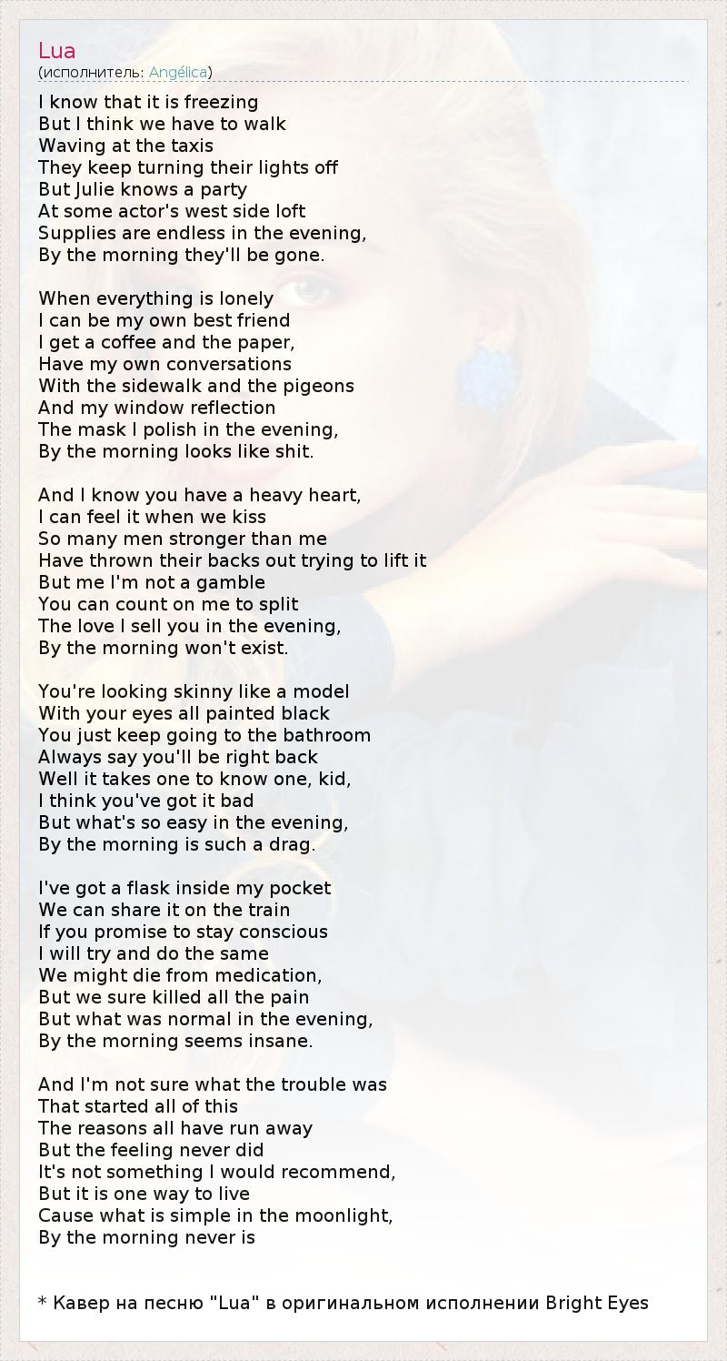 * Кавер на песню "Lua" в оригинальном исполнении Bright Eyes