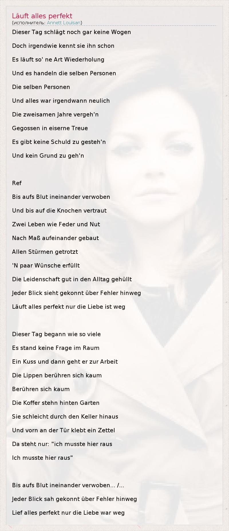 А как ты думаешь, о чем песня "Läuft alles perfekt" ?