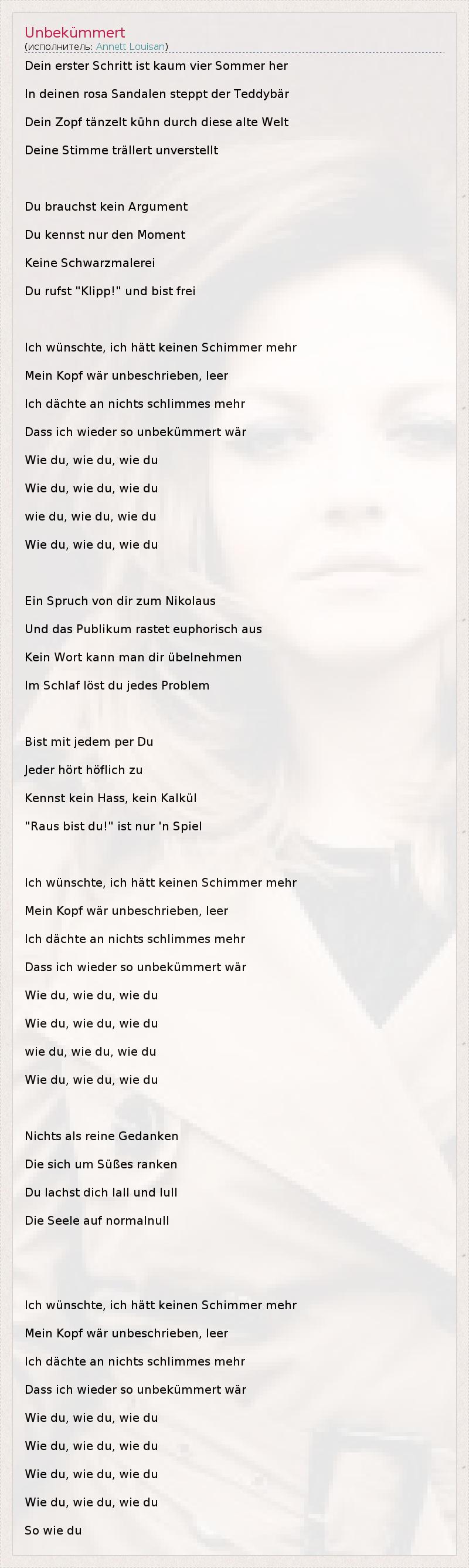 А как ты думаешь, о чем песня "Unbekümmert" ?