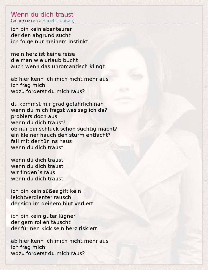 А как ты думаешь, о чем песня "Wenn du dich traust" ?