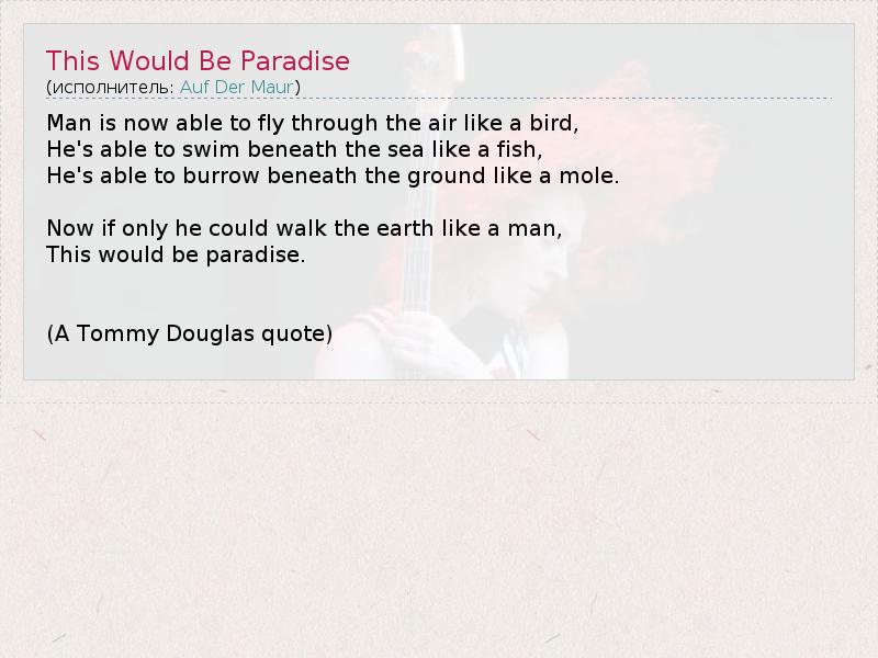 А как ты думаешь, о чем песня "This Would Be Paradise" ?