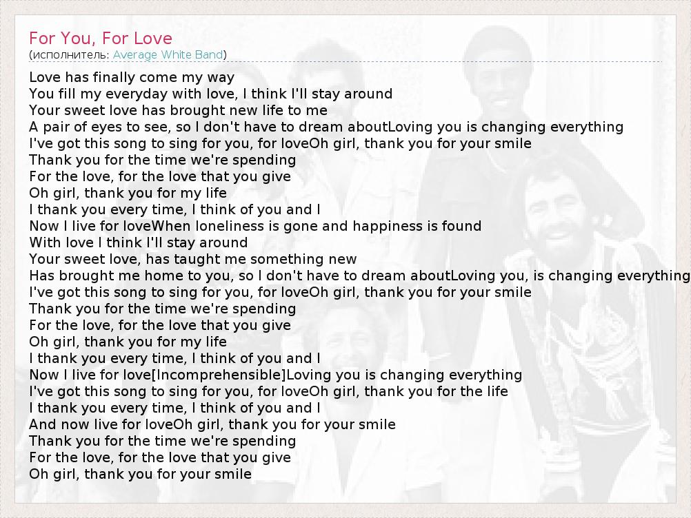 А как ты думаешь, о чем песня "For You, For Love" ?