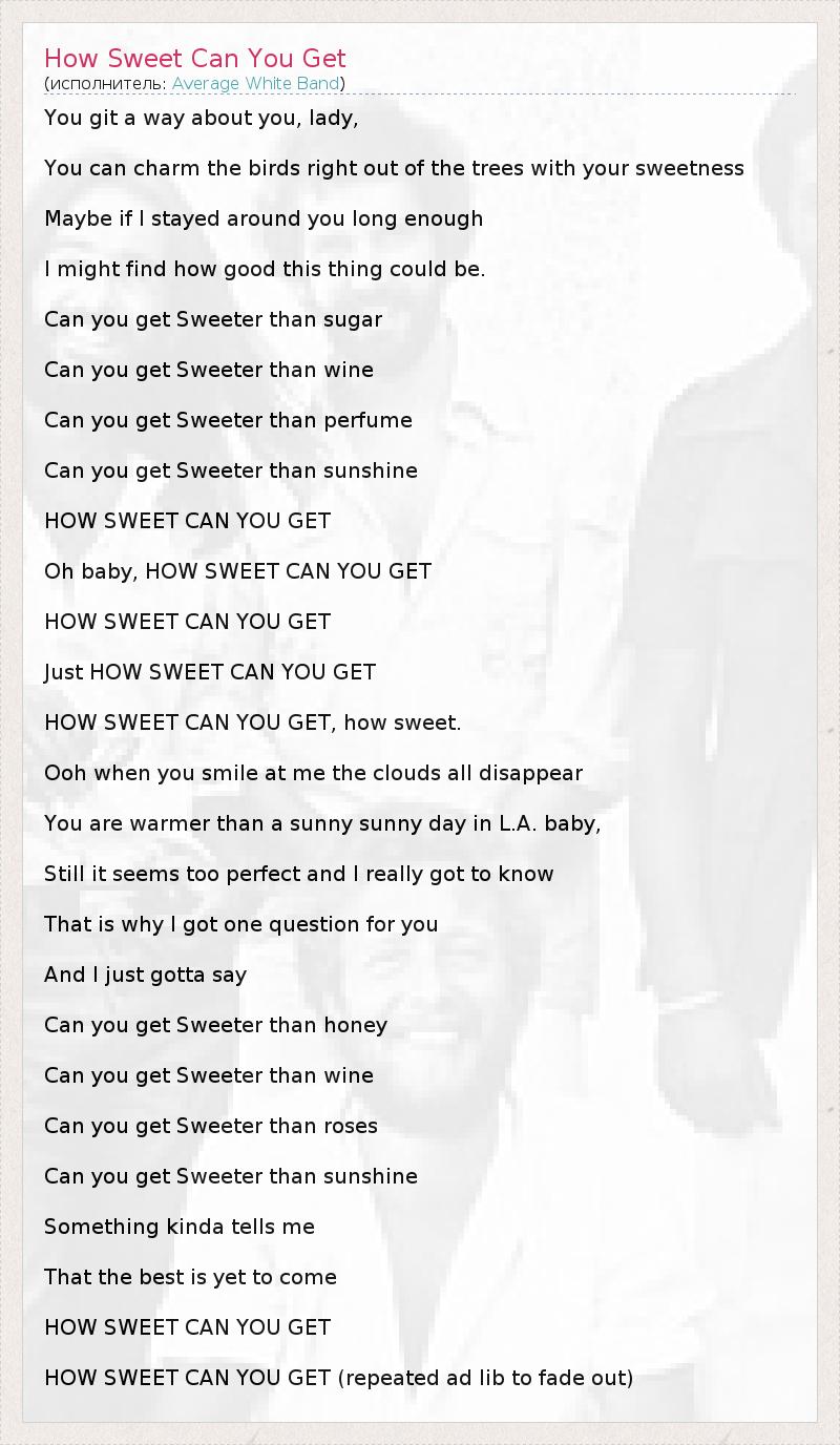 А как ты думаешь, о чем песня "How Sweet Can You Get" ?