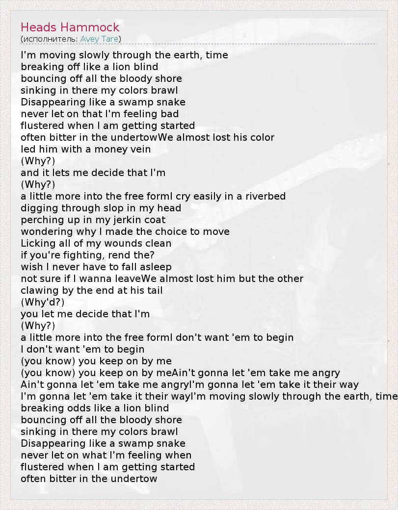А как ты думаешь, о чем песня "Heads Hammock" ?