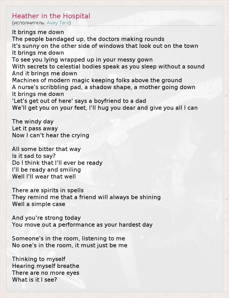 А как ты думаешь, о чем песня "Heather in the Hospital" ?