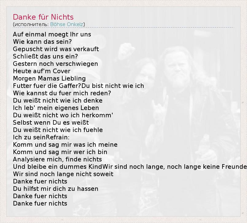 А как ты думаешь, о чем песня "Danke für Nichts" ?