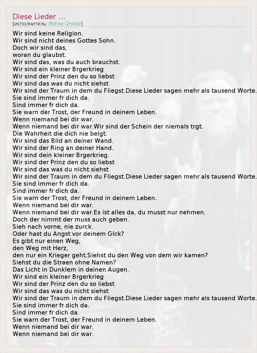 А как ты думаешь, о чем песня "Diese Lieder ..." ?
