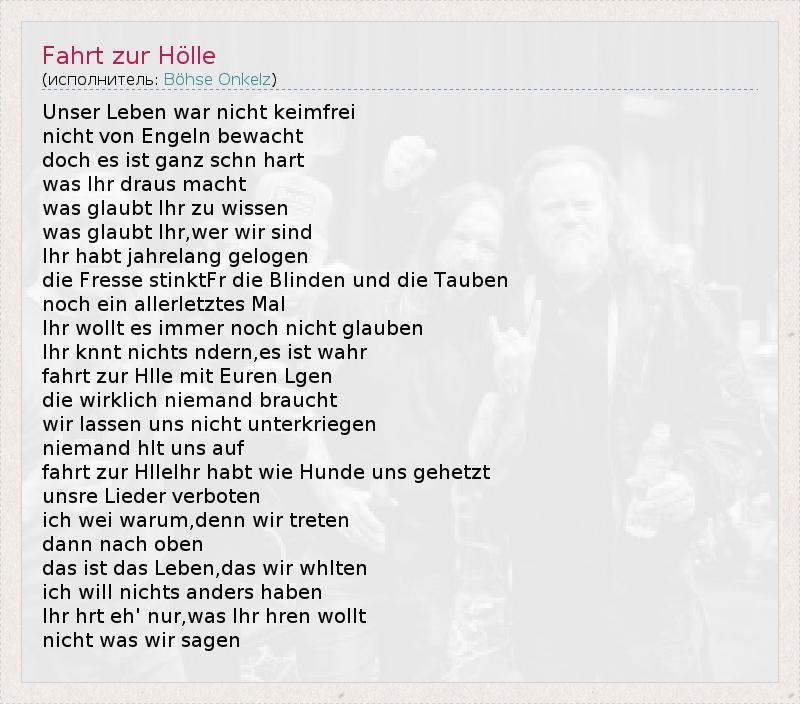 А как ты думаешь, о чем песня "Fahrt zur Hölle" ?