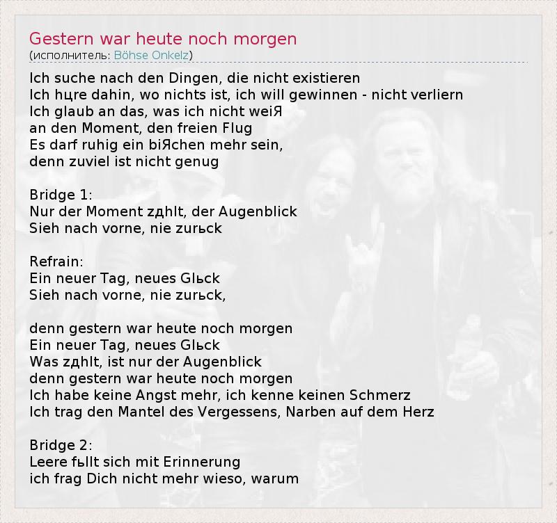 А как ты думаешь, о чем песня "Gestern war heute noch morgen" ?