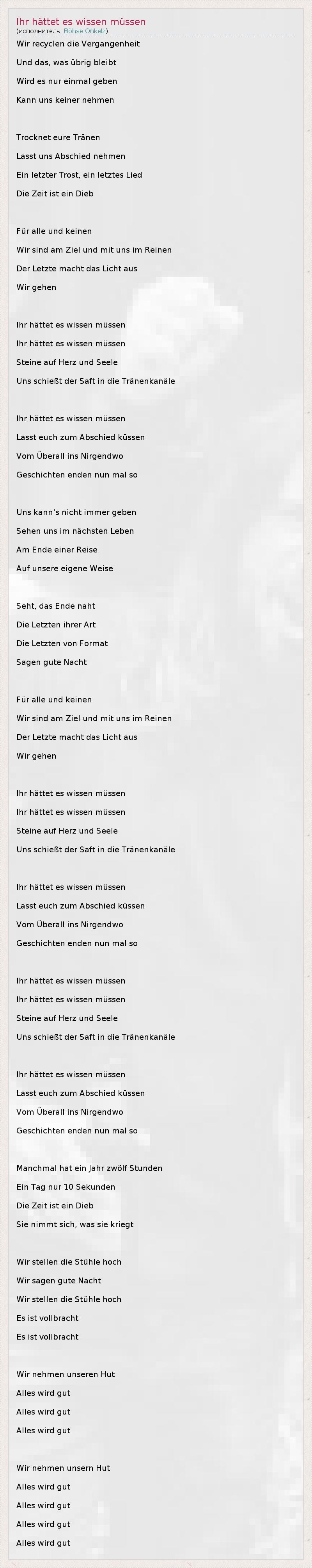 А как ты думаешь, о чем песня "Ihr hättet es wissen müssen" ?