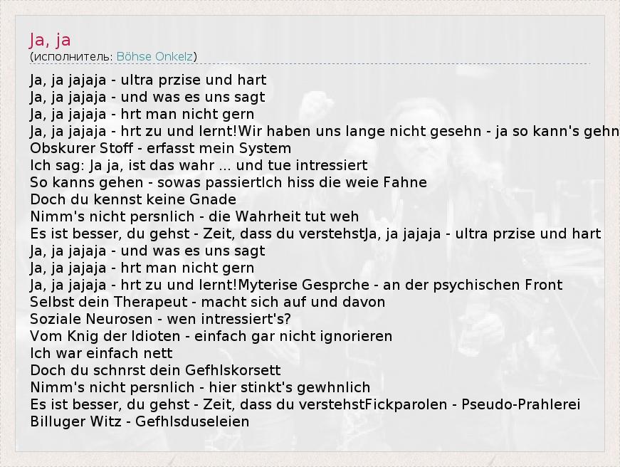 А как ты думаешь, о чем песня "Ja, ja" ?