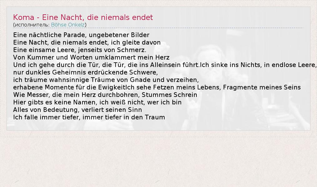 А как ты думаешь, о чем песня "Koma - Eine Nacht, die niemals endet" ?