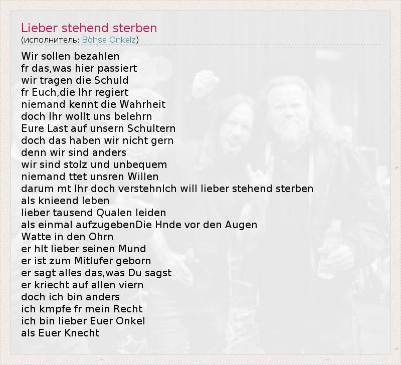 А как ты думаешь, о чем песня "Lieber stehend sterben" ?