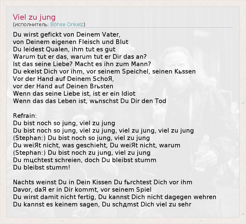 А как ты думаешь, о чем песня "Viel zu jung" ?