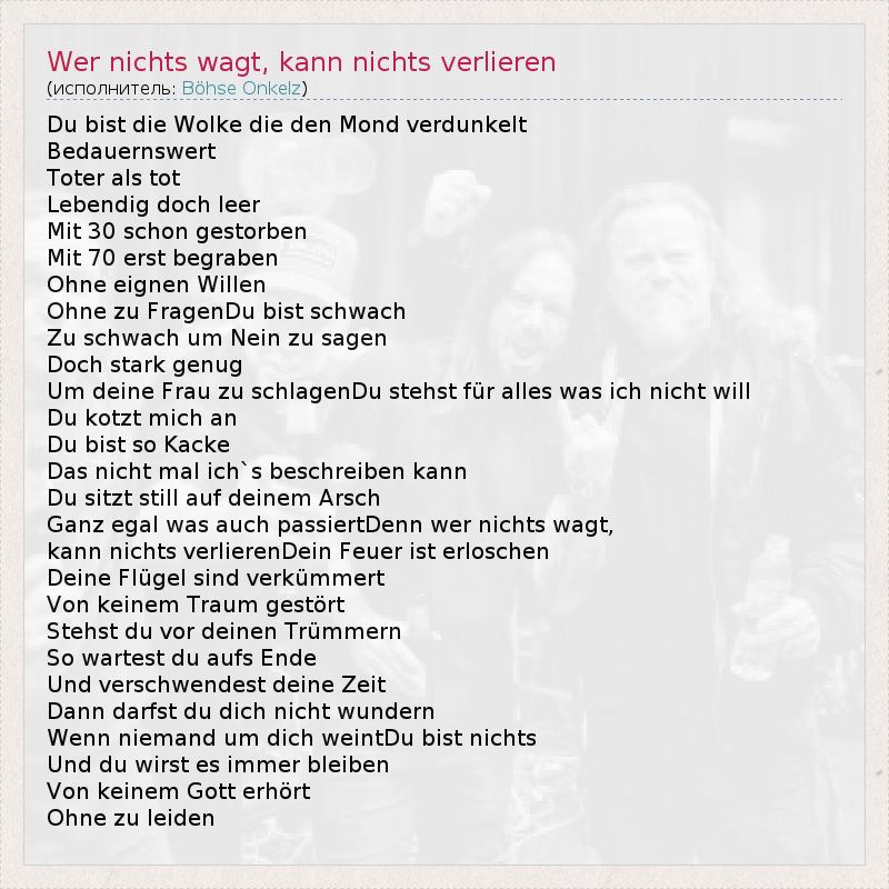 А как ты думаешь, о чем песня "Wer nichts wagt, kann nichts verlieren" ?