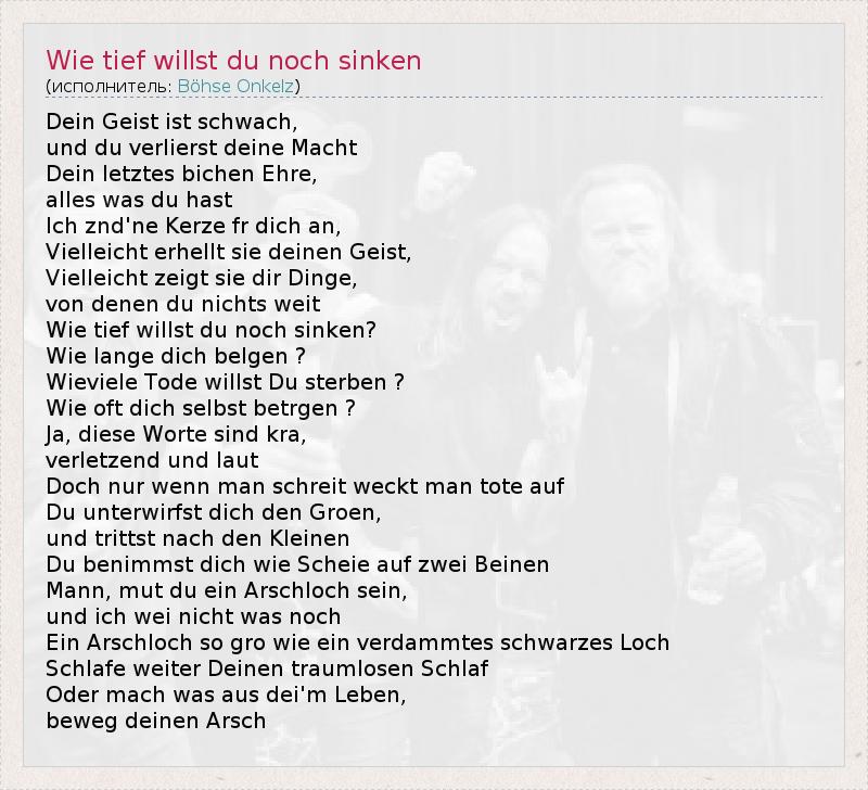 А как ты думаешь, о чем песня "Wie tief willst du noch sinken" ?