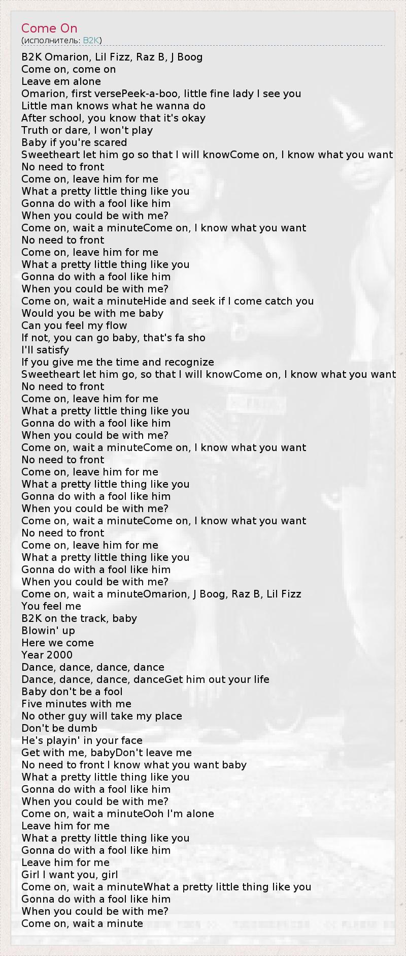 Come on, wait a minuteOmarion, J Boog, Raz B, Lil Fizz