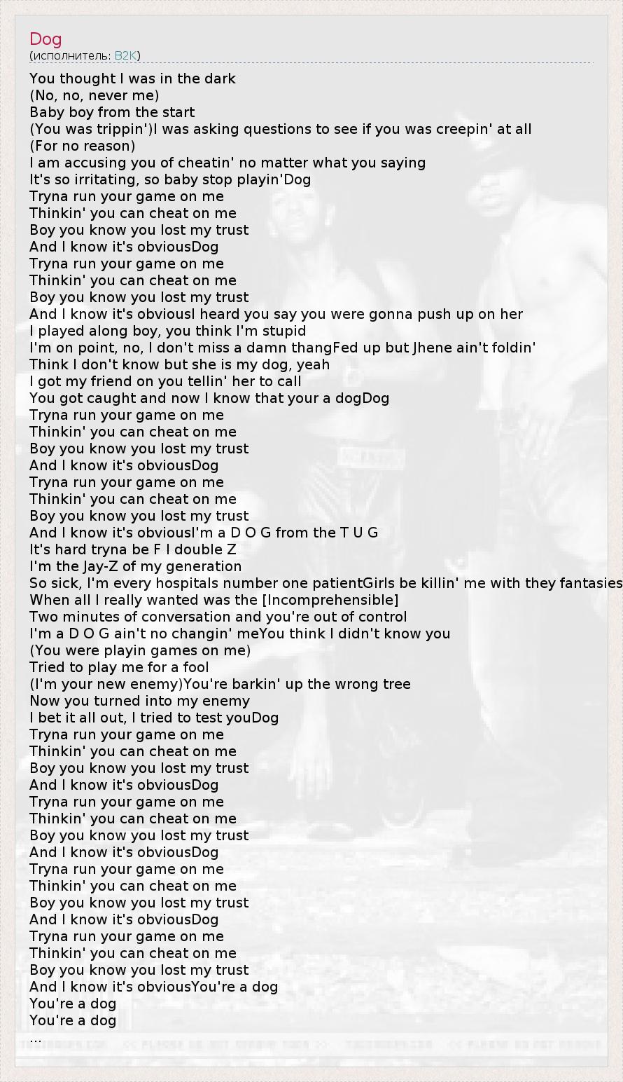А как ты думаешь, о чем песня "Dog" ?