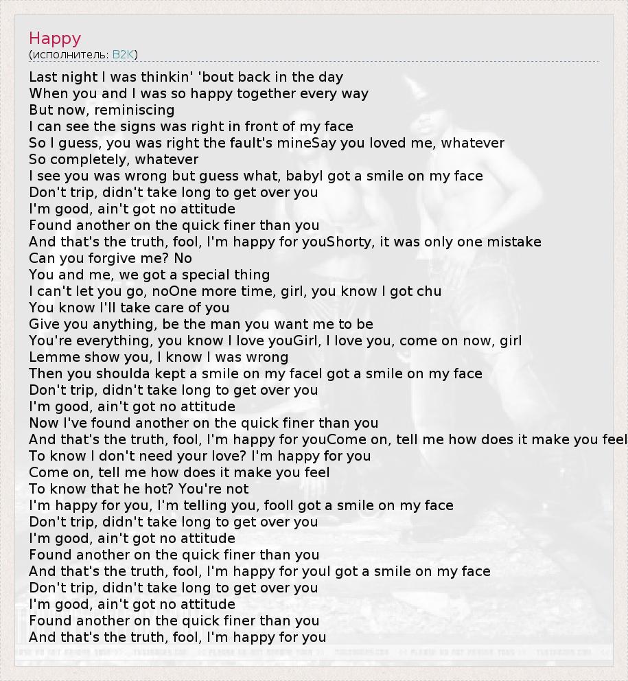 I'm happy for you, I'm telling you, foolI got a smile on my face