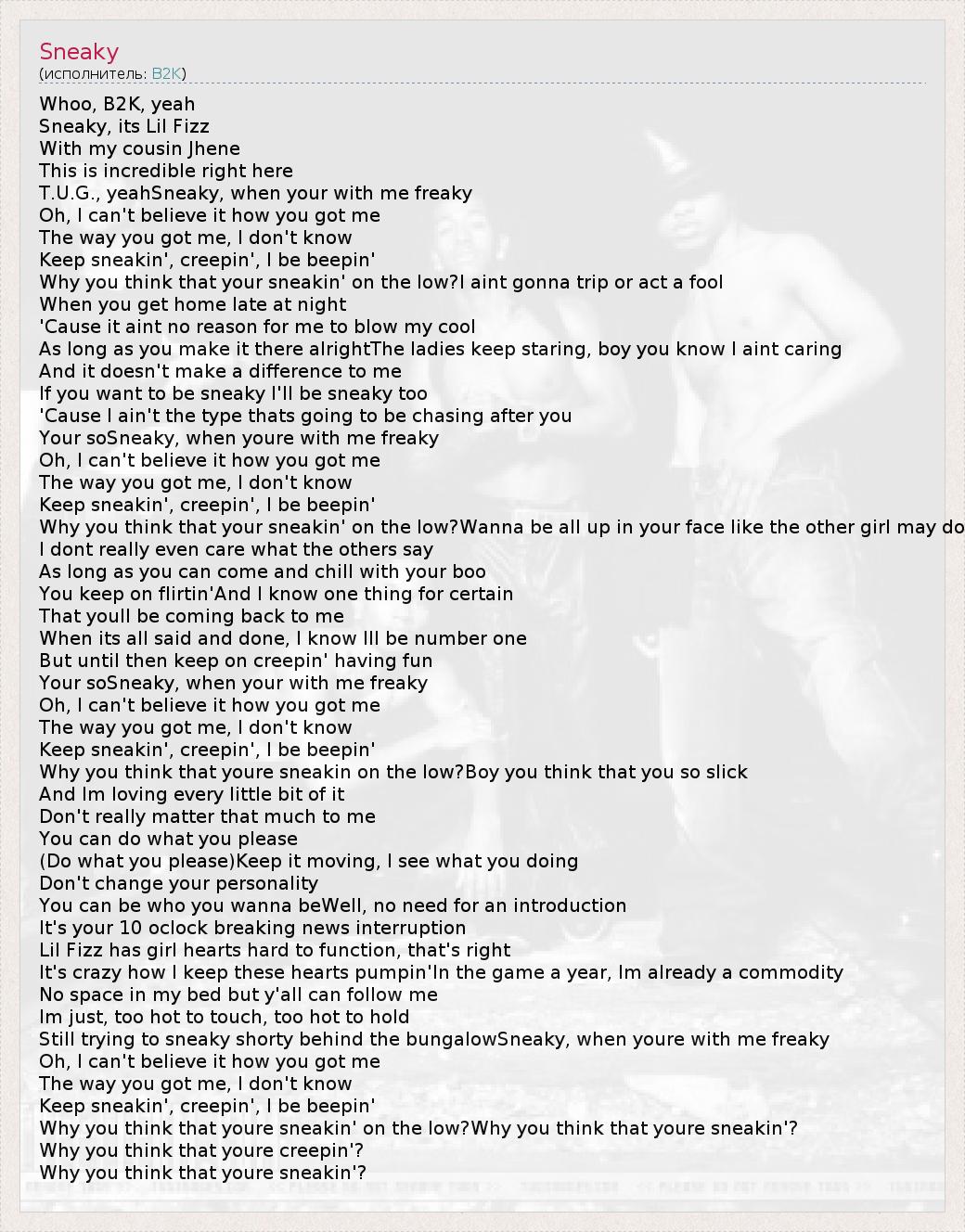 Why you think that youre sneakin' on the low?Why you think that youre sneakin'?