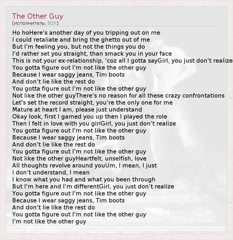 А как ты думаешь, о чем песня "The Other Guy" ?