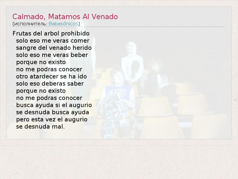 А как ты думаешь, о чем песня "Calmado, Matamos Al Venado" ?