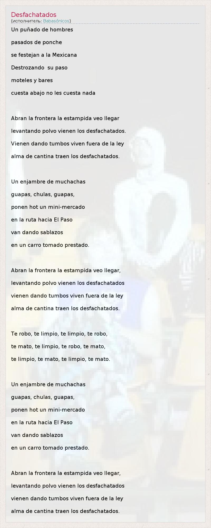 А как ты думаешь, о чем песня "Desfachatados" ?