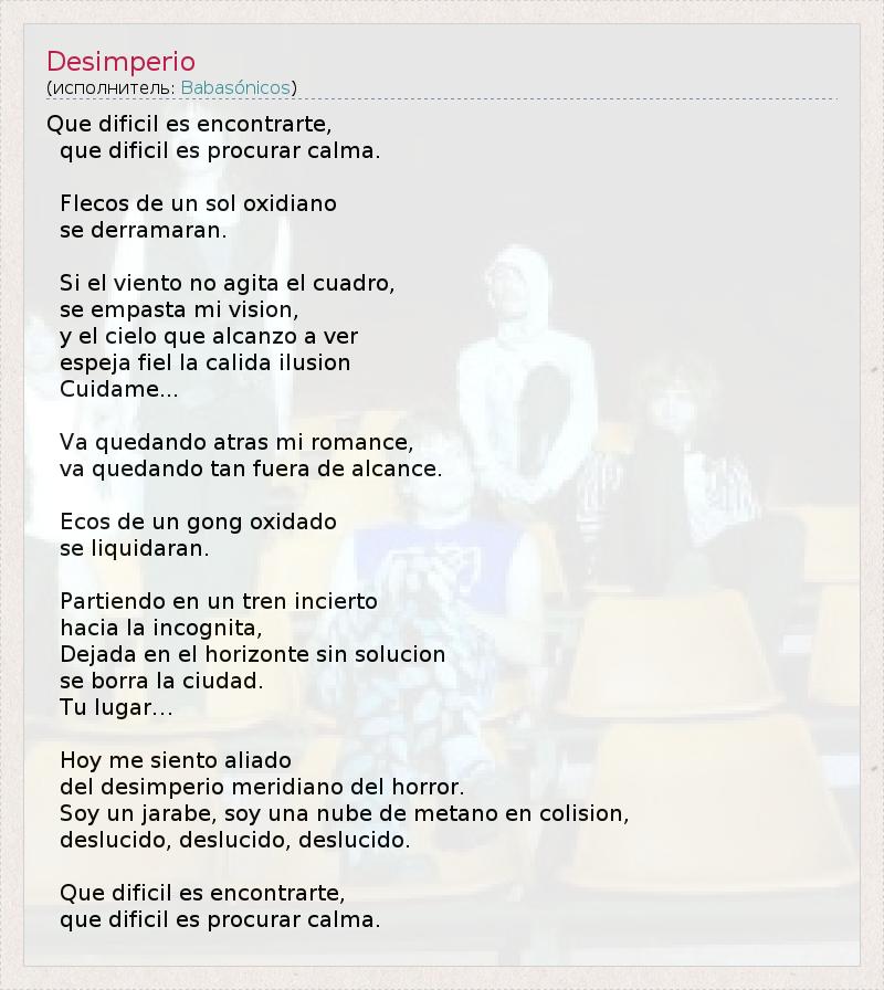 Это интересно:Babasónicos - аргентинская рок-группа, образованная в начале 1990-ых. Cтала одной из основных андерграунд-команд конца 90-ых.Название является синтезом от "Sai Baba" (индийский гуру) и от "The Jetsons" (по-испански - "Los Supersónicos").Лид-вокалист Adrián "Dárgelos" Rodríguez и клавишник Diego "Uma-T" Tuñón изначально решили играть в стиле "новой волны" (так называемый new wave), совершенно... продолжение