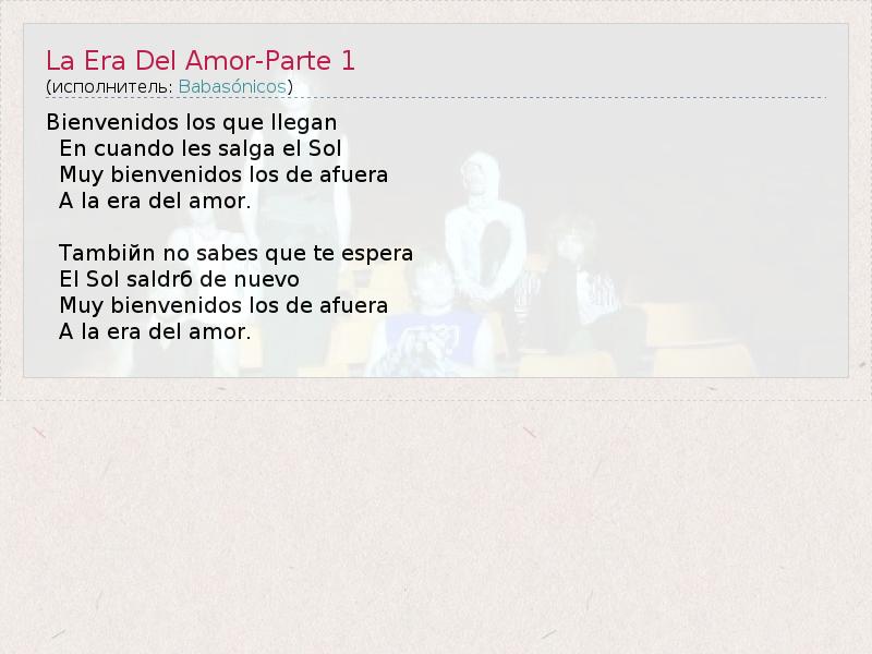 А как ты думаешь, о чем песня "La Era Del Amor-Parte 1" ?