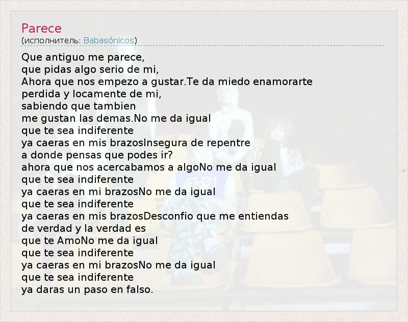 Это интересно:Babasónicos - аргентинская рок-группа, образованная в начале 1990-ых. Cтала одной из основных андерграунд-команд конца 90-ых.Название является синтезом от "Sai Baba" (индийский гуру) и от "The Jetsons" (по-испански - "Los Supersónicos").Лид-вокалист Adrián "Dárgelos" Rodríguez и клавишник Diego "Uma-T" Tuñón изначально решили играть в стиле "новой волны" (так называемый new wave), совершенно... продолжение