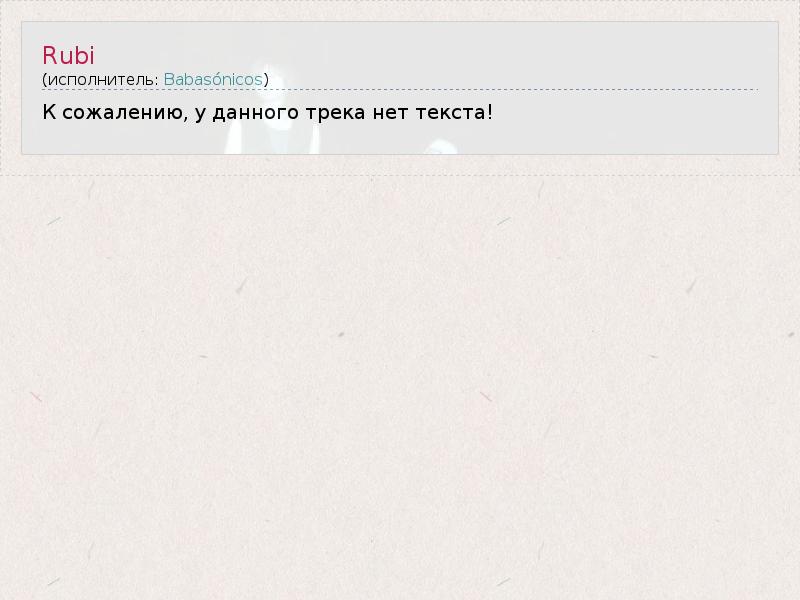 La Gelosia (с текстом перевода)  Виноград (Минус)  Baptize ( с текстом ^_^)  True Love (полная версия текста)  Я ГАТОВИЛА ЛИБИДУ ПОЛНАЯ ВЕРСИЯ (ЕСТЬ ТЕКСТ)  Спит убитая лисичка  На каене  Сказка о Прыгуне и Скользящем (полностью)  La fetta illa Ali(as)  L'amore ci cambia la vita  Tombe La Neige (Падает снег)