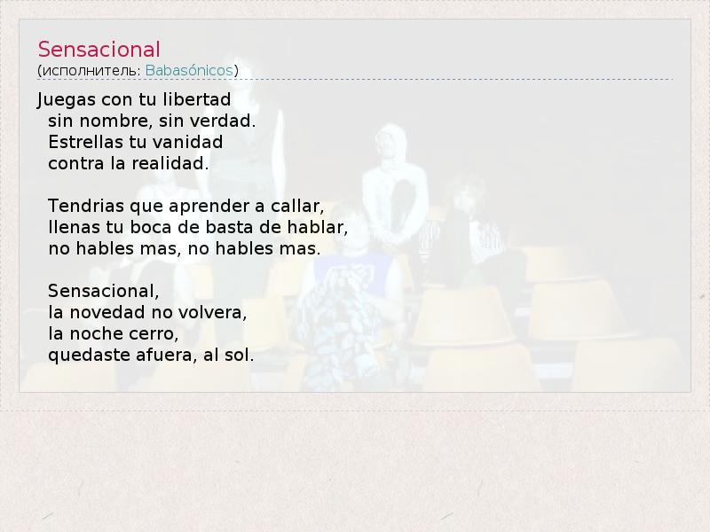 Это интересно:Babasónicos - аргентинская рок-группа, образованная в начале 1990-ых. Cтала одной из основных андерграунд-команд конца 90-ых.Название является синтезом от "Sai Baba" (индийский гуру) и от "The Jetsons" (по-испански - "Los Supersónicos").Лид-вокалист Adrián "Dárgelos" Rodríguez и клавишник Diego "Uma-T" Tuñón изначально решили играть в стиле "новой волны" (так называемый new wave), совершенно... продолжение